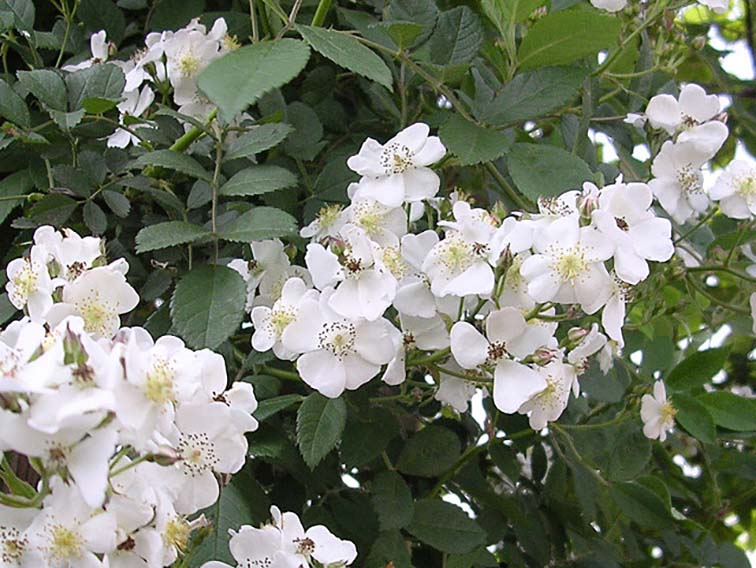 Распространена в Корее, Китае, Японии. Растёт в кустарниковых зарослях, на склонах, по долинам рек. Кустарник с длинными лазающими побегами, высотой 3,0 – 4,0 м. Листья эллиптические длиной 2 – 3 см., зубчатые, сверху голые, снизу опушенные. Соцветия пирамидально-метельчатые, многоцветковые. Цветки 1,5 – 2 см. в диаметре, простые, состоят из 5-6 лепестков, без запаха или со слабым ароматом корицы. Плоды эллиптические, гладкие, тёмно-красные, около 1 см. в диаметре. Цветёт в начале лета, в течение 30 дней. Цветочные почки закладываются на прошлогодних побегах, после 5 – 10 нижних листьев, поэтому обрезку можно производить в зависимости от высоты озеленяемого объекта. Отцветшие побеги желательно вырезать до основания. Выращивается как декоративное растение. В период цветения и осенью отличается высокой декоративностью. Неприхотлива, хорошо переносит засуху и полутень, но цветет обильнее на солнечных местах. Подходит для городского озеленения. Для любителей видовых роз!